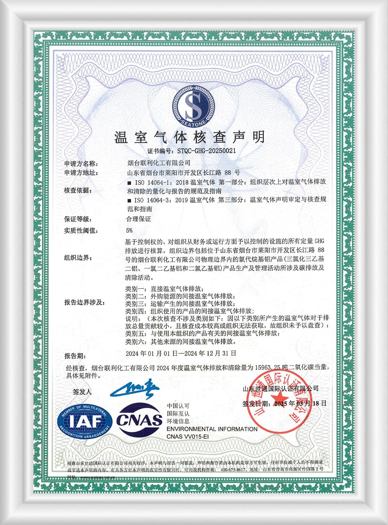 溫室氣體核查聲明